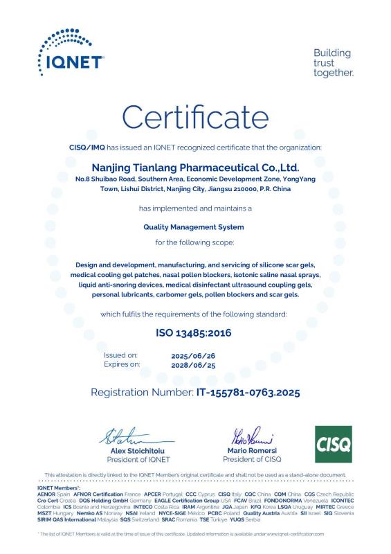 南京天朗制藥有限公司是研發(fā)、生產(chǎn)、銷(xiāo)售為一體的新興制藥企業(yè)。成立于2005年3月,于2013年9月江蘇省首家通過(guò)無(wú)菌滴眼液新版GMP認(rèn)證。生產(chǎn)基地座落于南京溧水工業(yè)園區(qū),交通便利,環(huán)境優(yōu)美。生產(chǎn)基地的一期工程占地70畝,一期投資2200萬(wàn)。現(xiàn)有員工近160人,其中80%的員工具有醫(yī)藥、化學(xué)等專(zhuān)業(yè)背景,30%的員工具有中級(jí)以上職稱(chēng)。90%以上的員工具有多年藥品生產(chǎn)、銷(xiāo)售和管理經(jīng)驗(yàn)。公司擁有現(xiàn)代化的滴眼劑、滴耳劑、滴鼻劑、噴霧劑GMP生產(chǎn)車(chē)間及軟膏劑、溶液劑、凝膠劑生產(chǎn)線(xiàn);配有專(zhuān)業(yè)的研發(fā)團(tuán)隊(duì);中等偏上,逐步加大的營(yíng)銷(xiāo)體系。