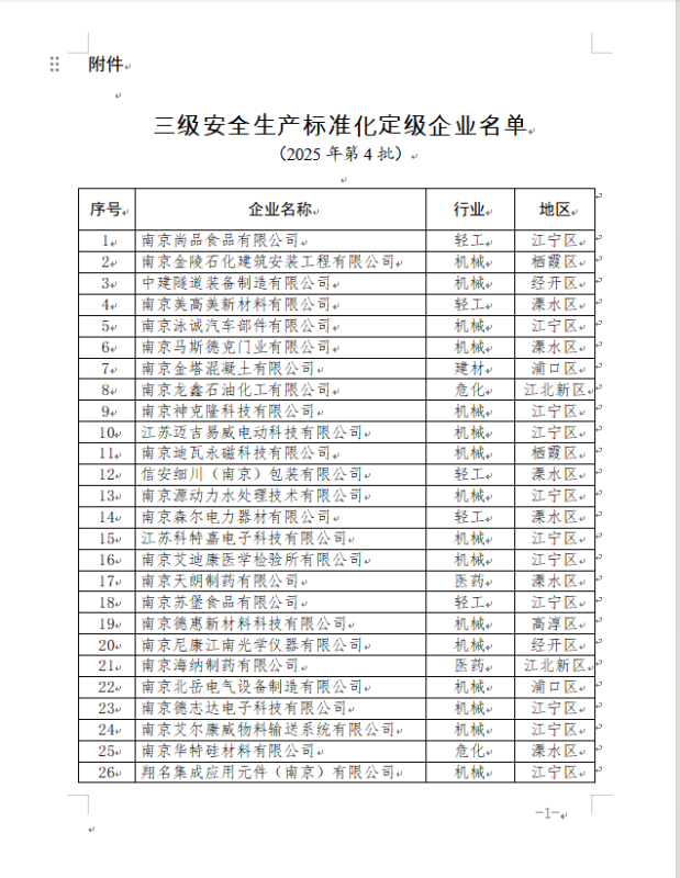 南京天朗制藥有限公司憑借完善的安全管理體系、規(guī)范的生產(chǎn)操作流程及扎實的風(fēng)險防控能力,順利通過安全生產(chǎn)標準化評審,于 2025年3月正式獲得安全生產(chǎn)標準化認證證書。作為醫(yī)藥生產(chǎn)企業(yè),天朗制藥始終堅守 “安全第一、預(yù)防為主、綜合治理” 的方針,將安全生產(chǎn)與藥品質(zhì)量合規(guī)緊密結(jié)合。